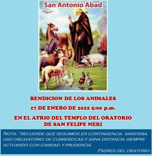 17 de enero de 2022 Equipo Redacción Bendición de Animales 2022 en el Templo del Oratorio de San Felipe Neri