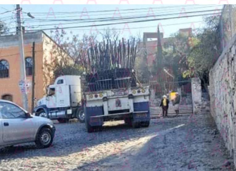 San Miguel de Allende, Gto., Martes 18 de enero 2022.- A modo de denuncia y queja, vecinos del Obraje, exponen que ahora casi a diario están pasando tráilers y vehículos de materiales para la construcción, que atribuyen son del desarrollo habitacional llamado «Garambullos» afectando su diario tránsito y calidad de vida.