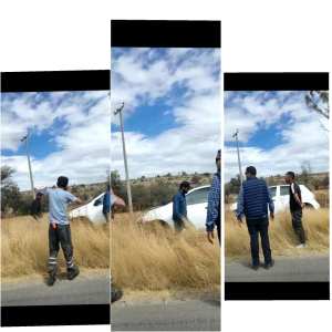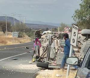 SAN MIGUEL DE ALLENDE, GTO., SÁBADO 12 DE FEBRERO 2022.- A la altura de la cruz del perdón, sobre la carretera Dolores- San Miguel de Allende se encuentra un vehículo totalmente volteado, mientras otros dos más que fueron a dar fuera de la cinta asfáltica.