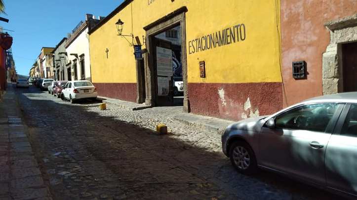 San Miguel de Allende, Gto., Jueves 17 de febrero 2022.- En calle de recreo, hay un estacionamiento que se apropia diariamente del espacio en la vía pública con unos «cubos» y cuando vecinos o transeúnte les piden moverlos solo un poco, estos son «despotas». Con información oficial del gobierno municipal se sabe que ya acudieron a la situación y señalaron estarán monitoreando la «falta administrativa»