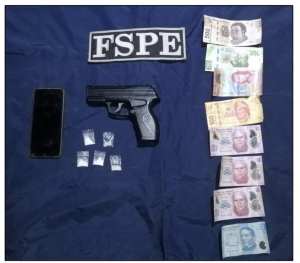 Por tal motivo, la persona, el arma y la droga, fueron puestas a disposición de la autoridad competente.