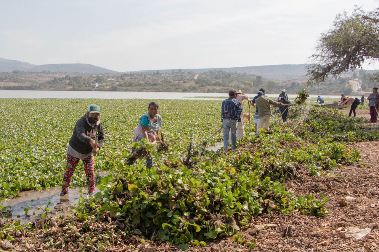 28 de febrero de 2022 Equipo Redacción RETOMAN PESCADORES Y MUNICIPIO LIMPIEZA DEL LIRIO ACUÁTICO EN LA PRESA ALLENDE (2)