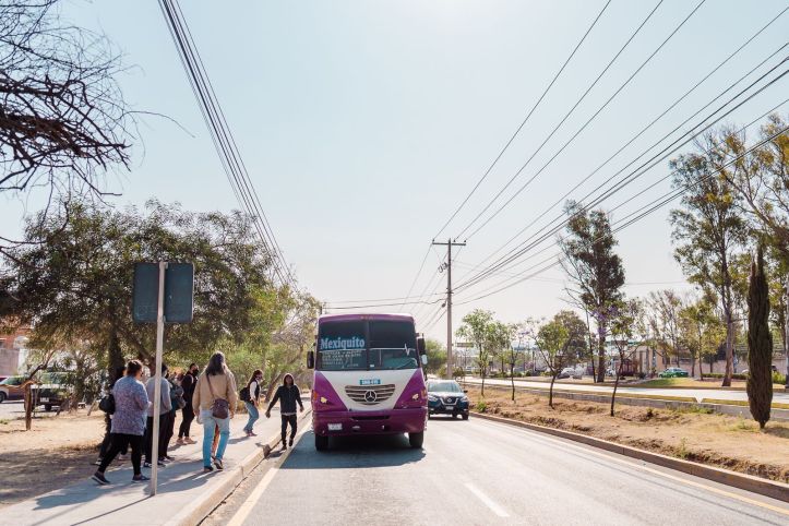 San Miguel de Allende, Gto. 16 de marzo de 2022. Con el nuevo parabús en el bulevar de la Conspiración, el Gobierno Municipal protegió la seguridad vial de los usuarios.