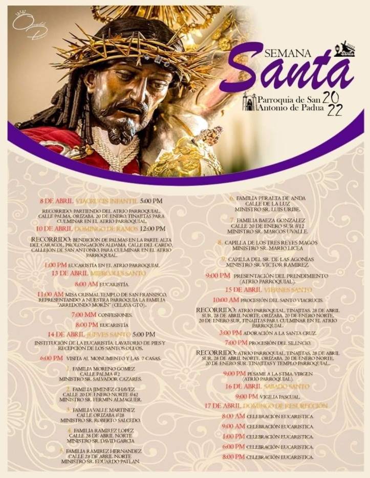 PROGRAMA PARROQUIA DE SAN ANTONIO DE PADUA. SEMANA SANTA 2022 (Ubicado en la colonia San Antonio)