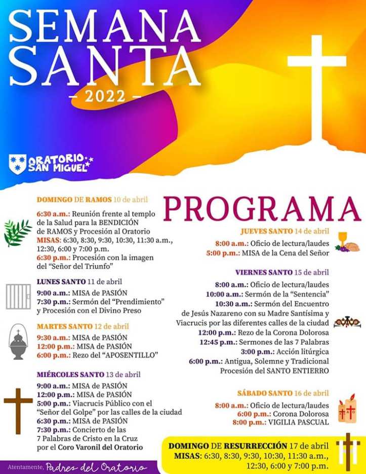 PROGRAMA TEMPLO DEL ORATORIO DE SAN FELIPE NERI, SEMANA SANTA 2022 (ubicado en la zona centro)
