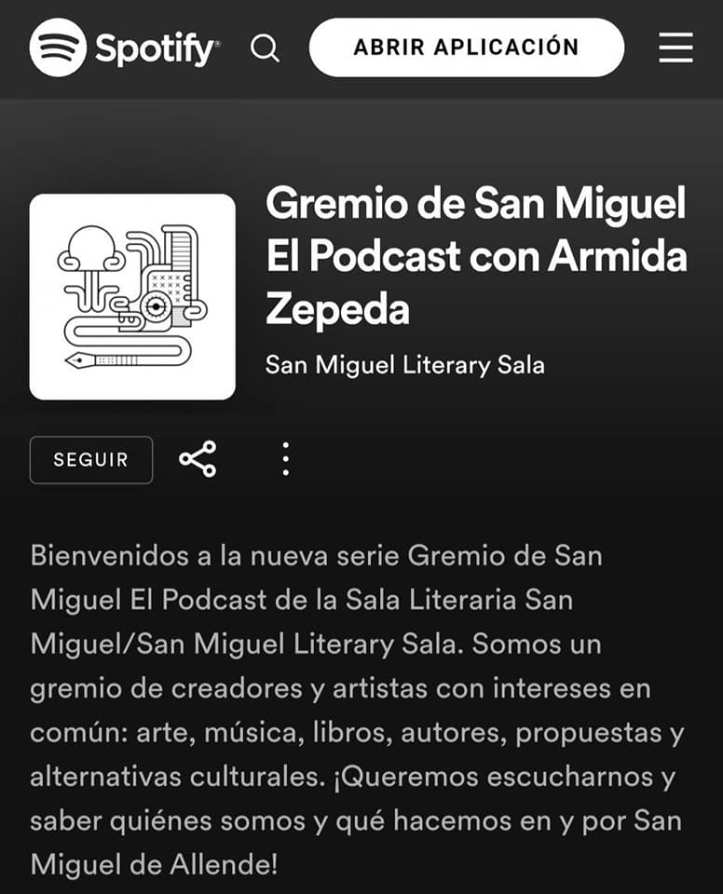 SAN MIGUEL DE ALLENDE, GTO., SÁBADO 02 DE JULIO 2022.- «Somos un gremio de creadores y artistas con intereses en común: arte, música, libros, autores, propuestas y alternativas culturales. ¡Queremos escucharnos y saber quiénes somos y qué hacemos en y por San Miguel de Allende!» El Gremio de San Miguel El Podcast de la Sala Literaria San Miguel/San Miguel Literary Sala.