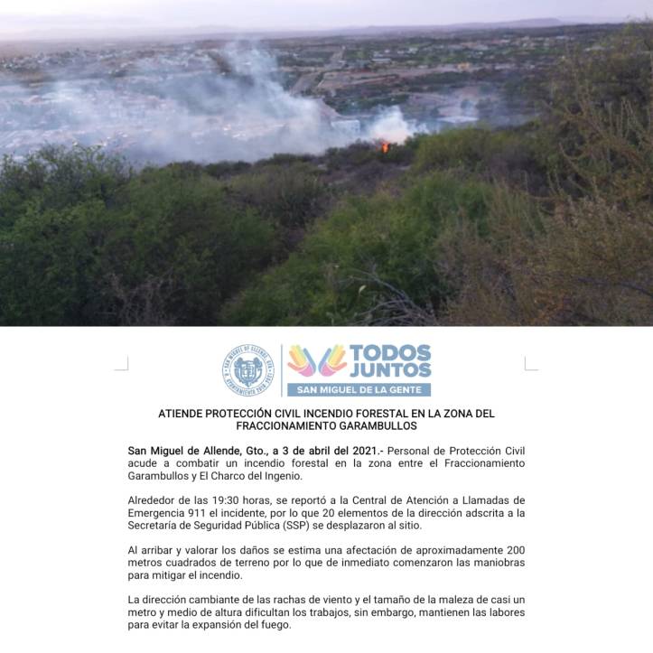 También desde el año 2019 se exhibió que los Incendio recurrentes que afectan al charco del ingenio, reserva natural «se originan al poniente, en las laderas de Santa María del Obraje, en el fraccionamiento Garambullos y en otros predios contiguos al norte y al sur de la reserva, todos ellos baldíos» esto por la misma reserva y sumado a la información emitida por el gobierno municipal de San Miguel de Allende 2021 a cargo de Luis Alberto Villarreal dónde recurrentemente atendían incendios en dicho fraccionamiento de Garambullos.