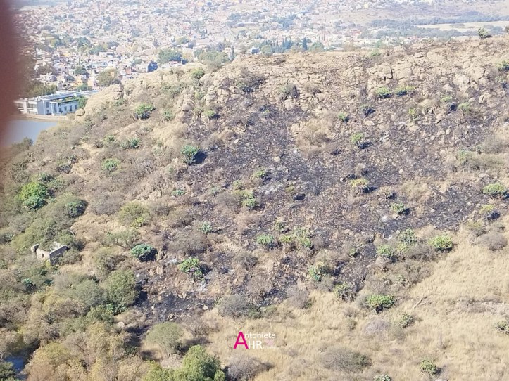 Según el móvil del incendio comenzó en la parte baja de los terrenos «real del Obraje» ingresando el fuego, al patrón, también en terrenos de garambullos.