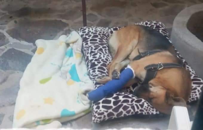 Por indicaciones médicas y fracturas del perro, se sugirió no moverlo del domicilio de la rescatista, pero en ningún momento la supuesta dueña tomó la responsabilidad en sus manos, siguiendo la rescatadora con los cuidados avalados por un veterinario profesional.