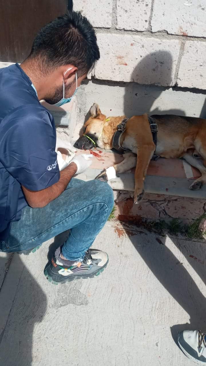 Fue así que ante la emergencia se buscó brindar los primeros auxilios al perro herido, debido a que sangraba y se convulsionaba, logrando obtener el apoyo de un veterinario de Angeles Pets, ante tal situación la rescatista a la par buscó a los supuestos dueños del perro maltratado, pero recibió caso omiso a mensajes. Fue hasta las 4pm que arribó la supuesta dueña del perro para solo encontrar la calle ensangrentada.