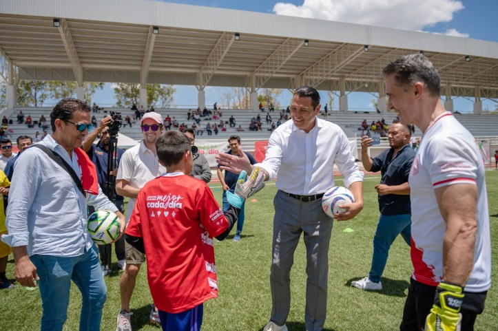 San Miguel de Allende, Gto. 20 de julio de 2023.- Se armó actividad llamada ‘Clinica deportiva’ con leyendas del fútbol como; Adolfo Ríos, Héctor Reynoso, Joel «Tiburón» Sánchez y Camilo Romero, en el estadio Capi Correa con las ligas infantiles y juveniles del municipio de San Miguel de Allende.