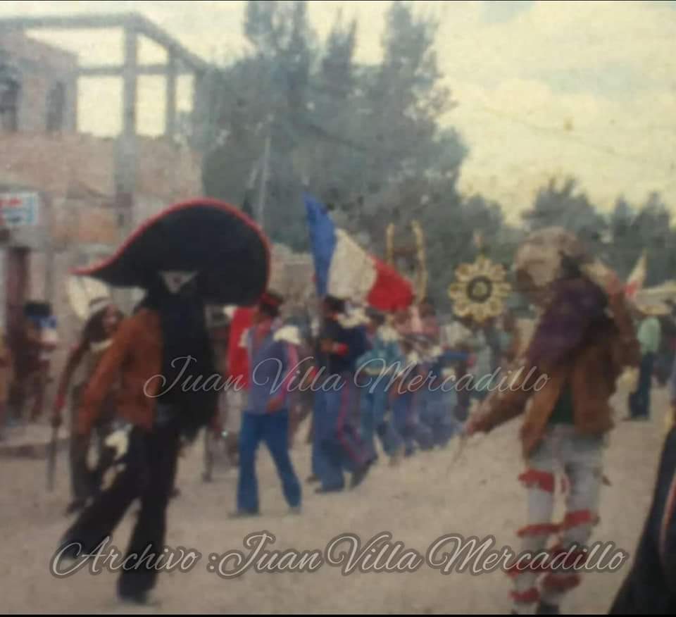 2. Foto antigua de 1970 tomada antes de llegar al puente de Guanajuato, al frente «La danza de rayados, águilas blancas de los Rodriguez» «danza de Rayados del Señor Cipriano Ramírez»