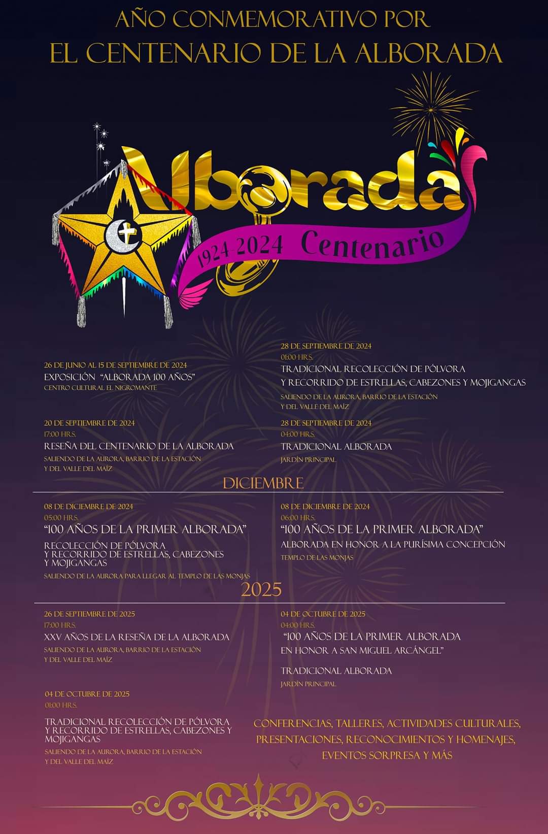 🔸 La Alborada 2024 será el 28 de septiembre 2024 osea, comienza la fiesta en barrios tradicionales desde la noche del 27 de septiembre y en la madrugada del sábado 28 de septiembre se realiza la quema de cohetes en la famosa ‘Alborada’ en honor a San Miguel Arcángel dentro del Año Conmemorativo por la Alborada 99 años.