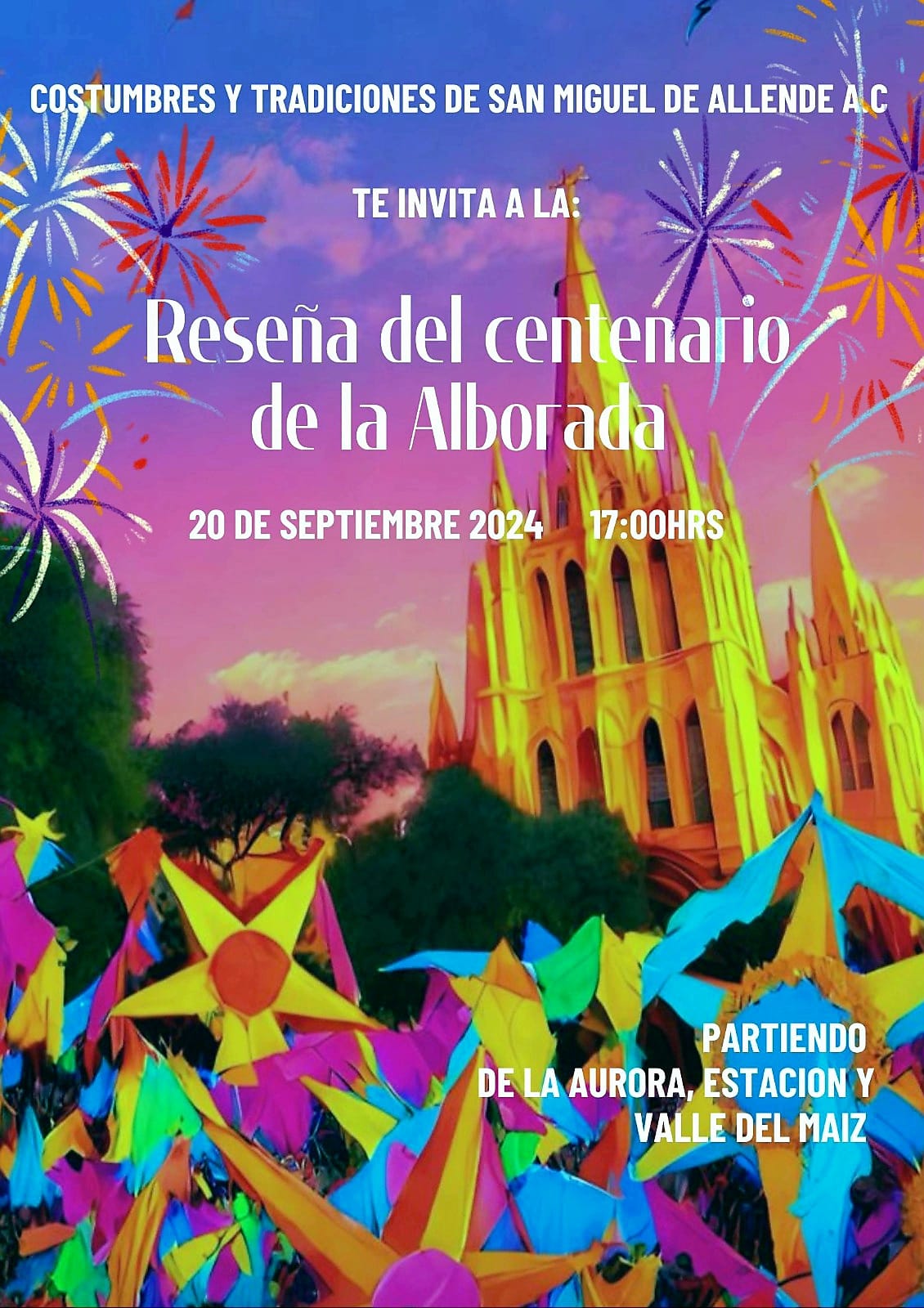 ▪️ 4. pero será el 08 de diciembre 2024 cuando se haga la conmemoración histórica de la Primer Alborada que se festejó en esta ciudad de San Miguel de Allende, donde se espera el apoyo de autoridades municipales para el realce de estos eventos y actualmente ya se encuentran planeando lo que sucederá en este Centenario.
