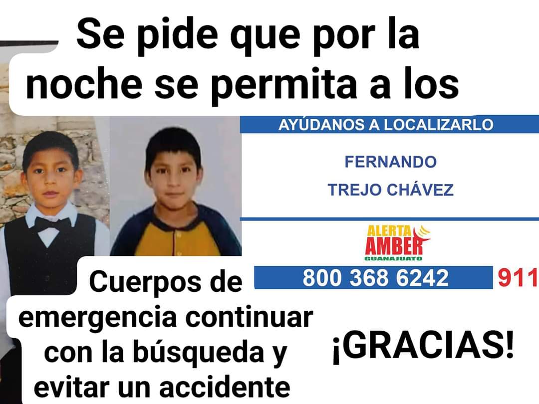 El martes 20 de agosto 2024 alrededor de las 6pm en la comunidad de Marroquín de Abajo, el menor de edad Fernando Trejo Chavez de 6 años de edad, desaparecío.