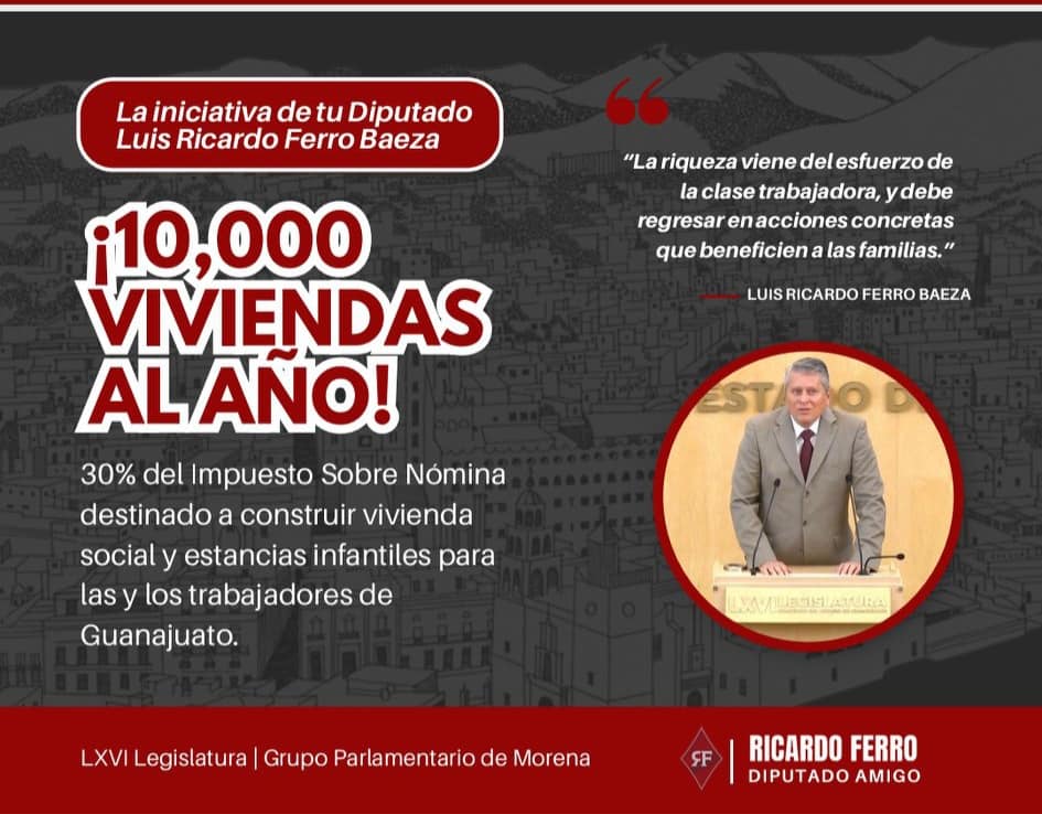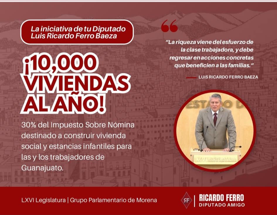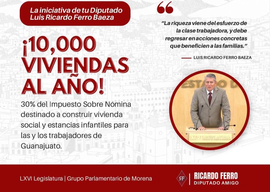 Para atender esta problemática, el diputado Ricardo Ferro, del Grupo Parlamentario de Morena, presentó una iniciativa que busca destinar el 30% del Impuesto Sobre Nómina a la construcción de viviendas sociales y al desarrollo de estancias infantiles en Guanajuato.