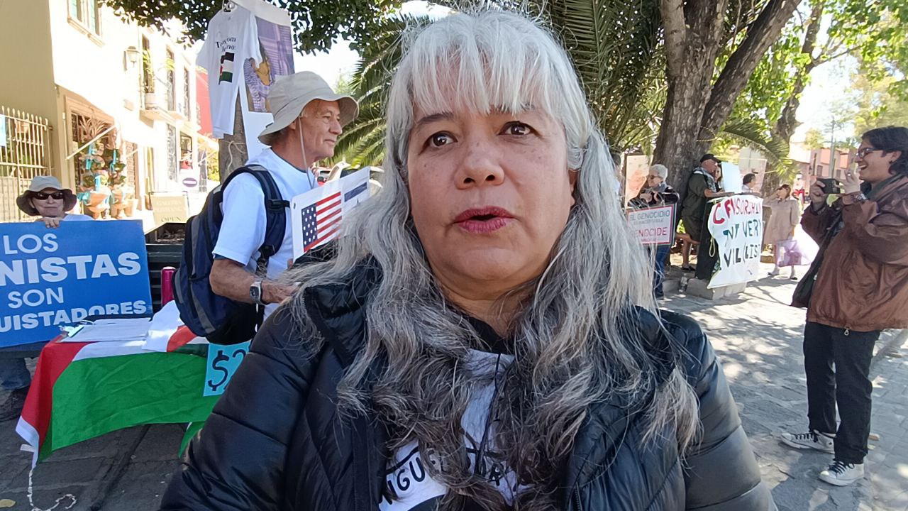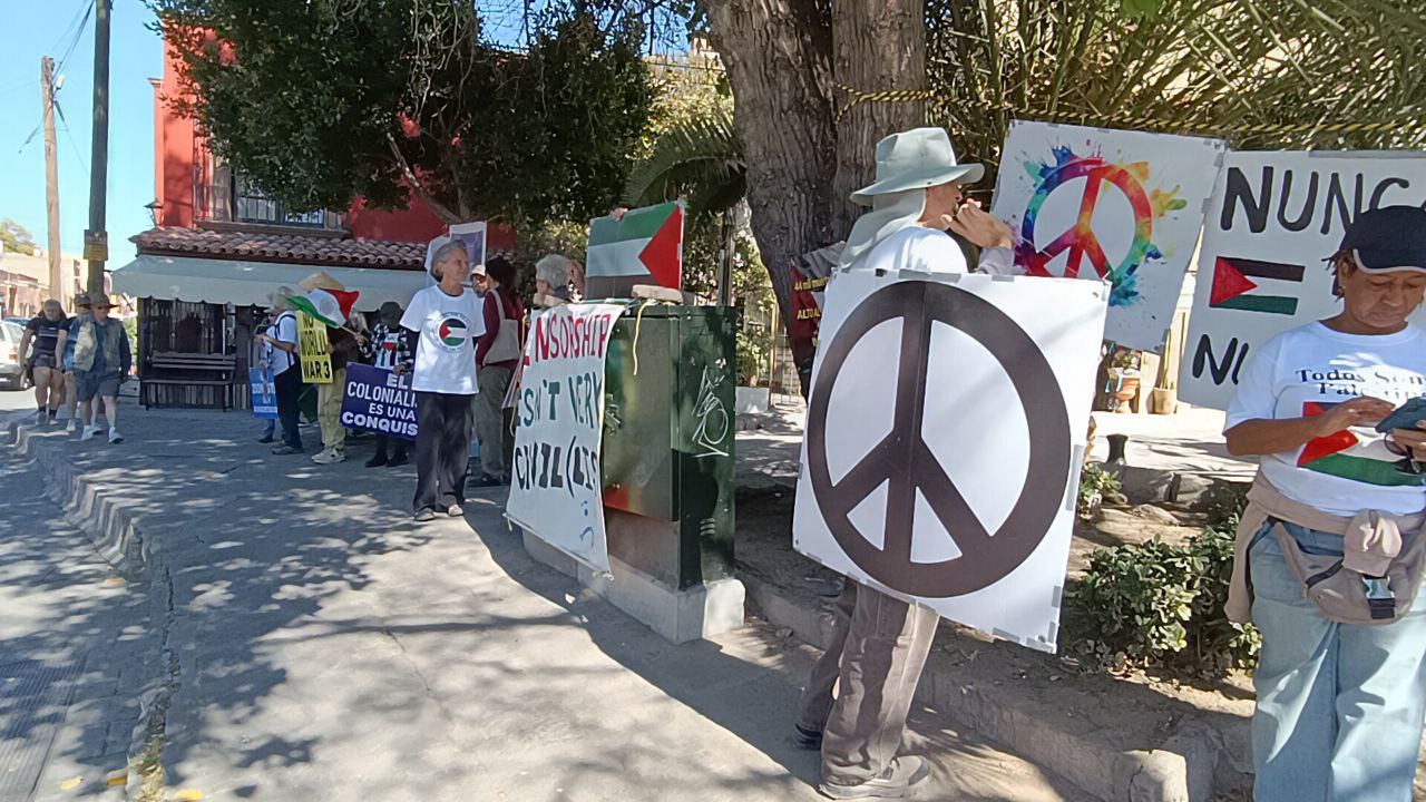 SAN MIGUEL DE ALLENDE, GTO., SÁBADO 28 DE DE DICIEMBRE 2024.- «Si estas a favor de palestina de que México rompa relaciones con Israel…» es la petición por lo que se reúnen cada sábado de 11am a 2pm en ancha de San Antonio a modo de manifestación pacífica, sanmiguelenses nativos y sanmiguelenses extranjeros para recaudar una meta de 130 mil firmas.