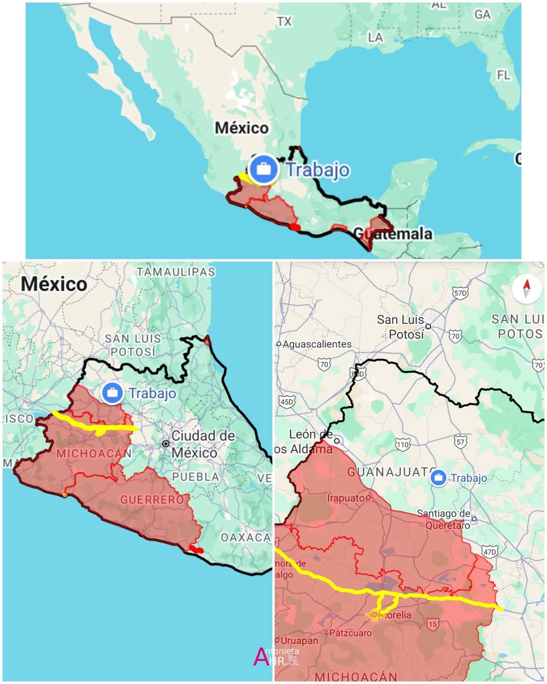 Áreas al sur de la Carretera Federal 45D: Los empleados del gobierno de EE. UU. no pueden viajar al área al sur de la Carretera Federal 45D, Celaya, Salamanca e Irapuato, incluidas.