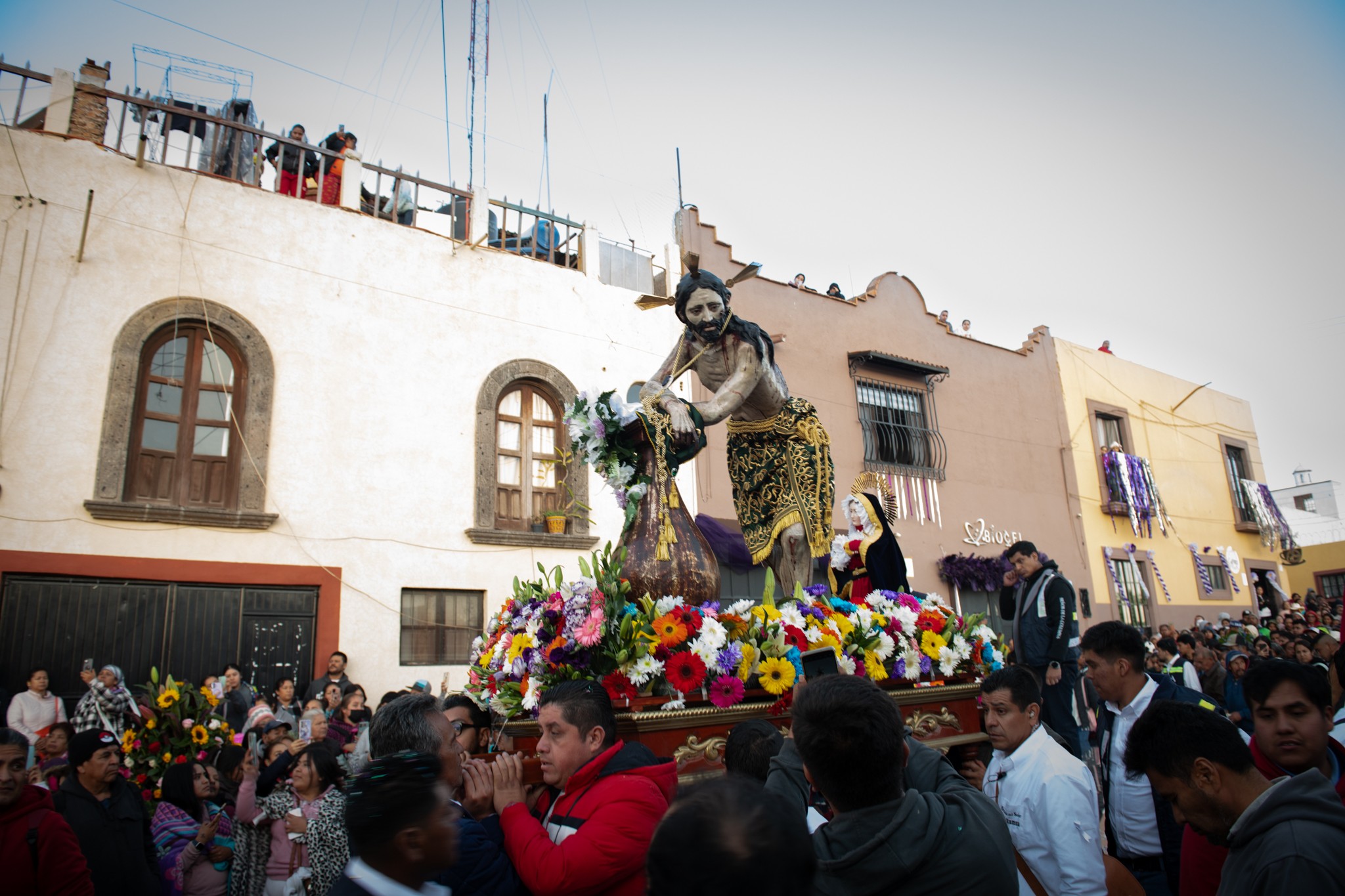 La procesión, profundamente simbólica, rememora los momentos de la Pasión de Cristo, en particular su arresto y los azotes antes del juicio. En su paso, los peregrinos fueron recibidos con tapetes de aserrín decorado, tendederos de papel picado y globos de colores, elementos que engalanaron principalmente calles como Independencia y San Antonio Abad, en el corazón del barrio de San Juan de Dios.