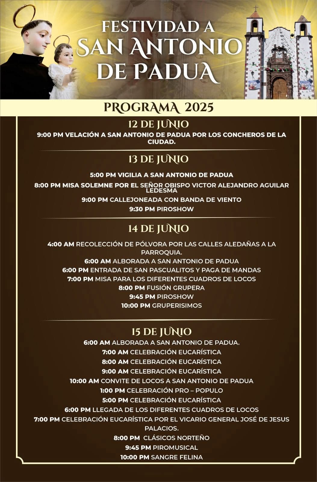 #DíadelosLocos #SanMigueldeAllende PROGRAMA DE PEREGRINACION DEL TRECENARIO DE FESTIVIDAD A SAN ANTONIO DE PADUA 2025