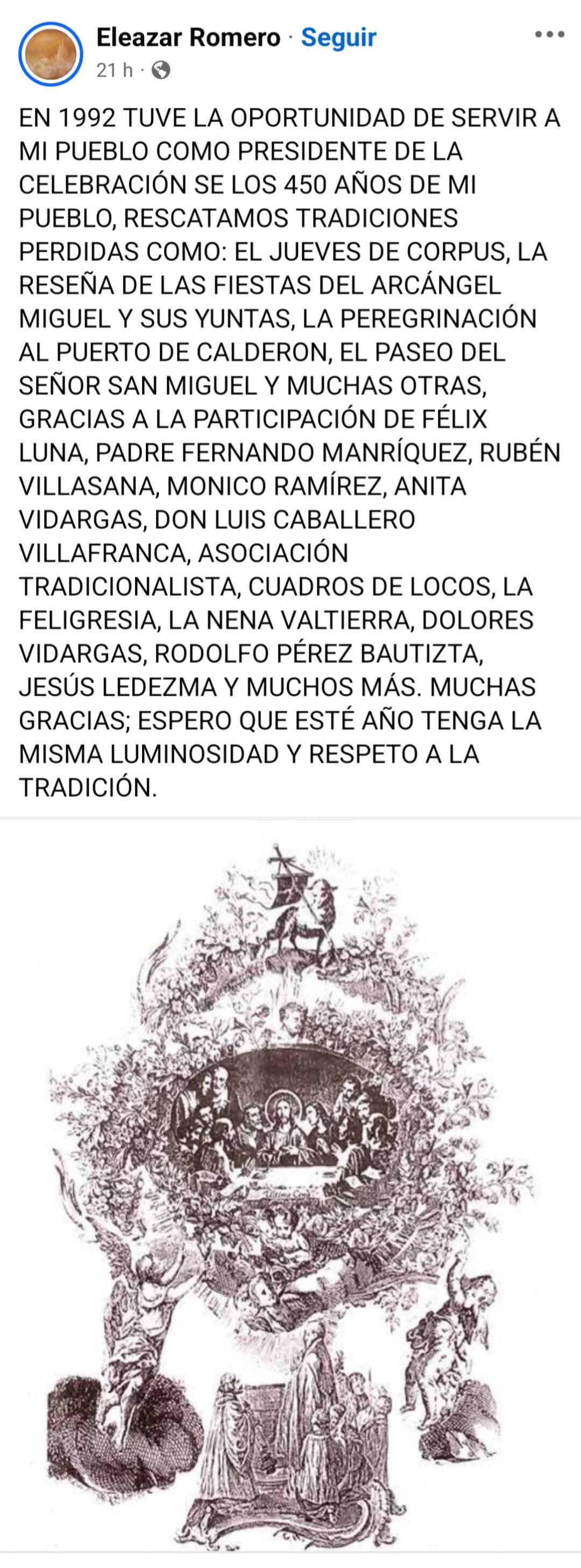 En redes sociales, ha llamado la atención de tradicionalistas que han lanzado comentarios al aire (a las redes sociales) sobre la procesión del Corpus, desde su rescate, o comentarios vagos, pero no se habla claro.
