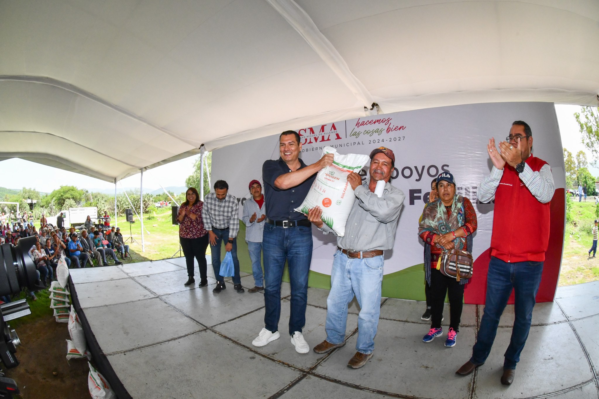 Este es el primero de cuatro eventos regionales en los que el Gobierno Municipal estará entregando de manera física el fertilizante directamente a los productores, acercando el apoyo y facilitando su aplicación oportuna en los cultivos.