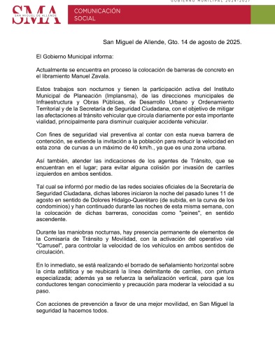 San Miguel de Allende, Gto. 14 de agosto de 2025.