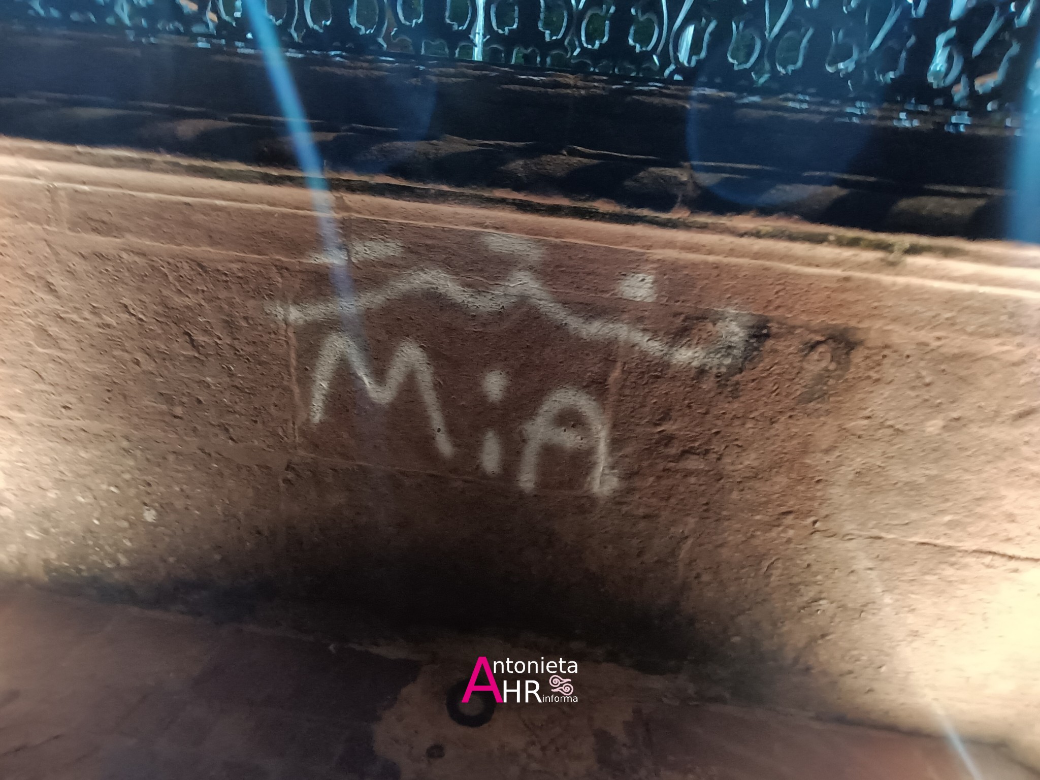 El graffiti o pinta que apareció este viernes 17 de octubre 2025, en el kiosco muestra un nombre hecho con aerosol mini pocket.