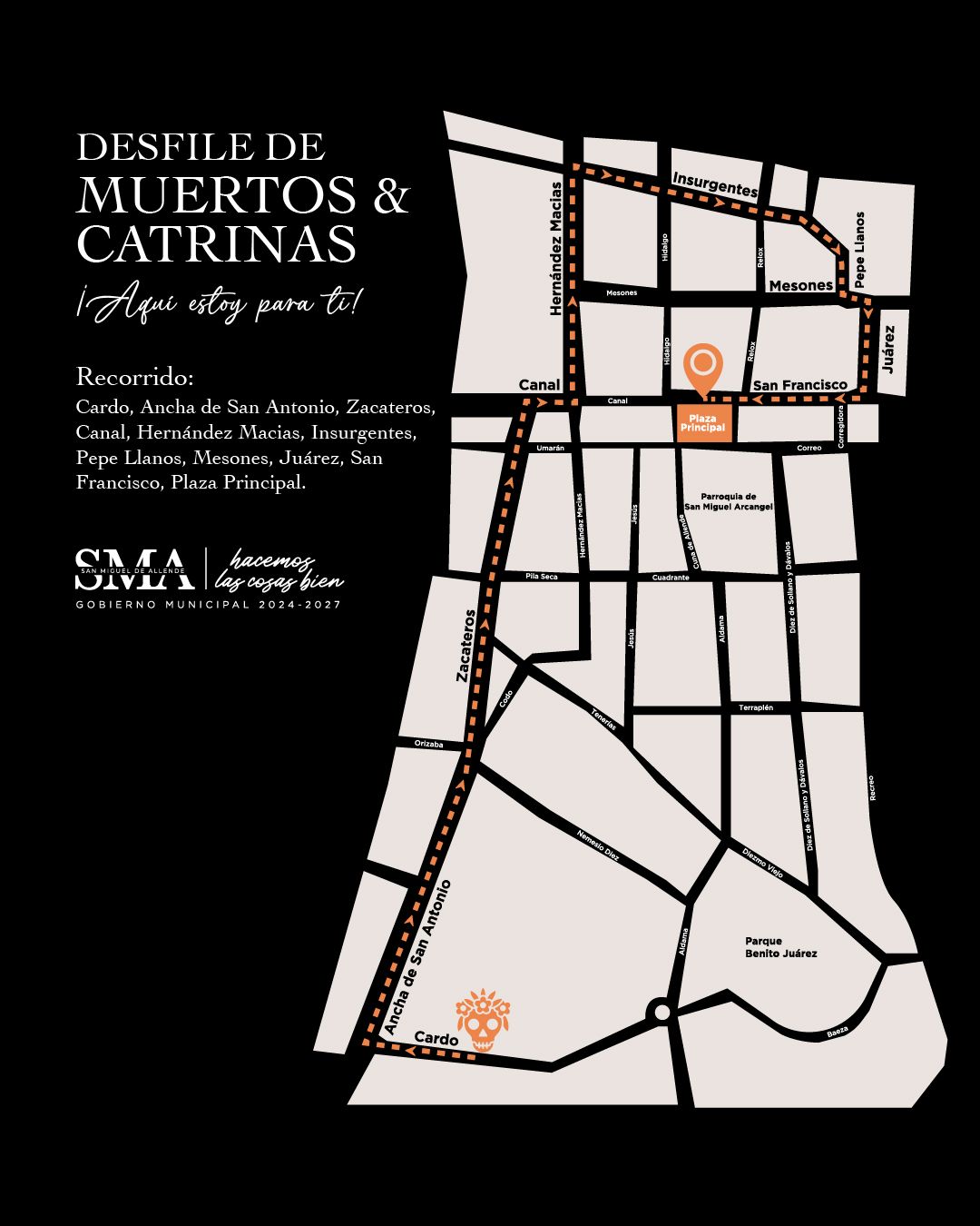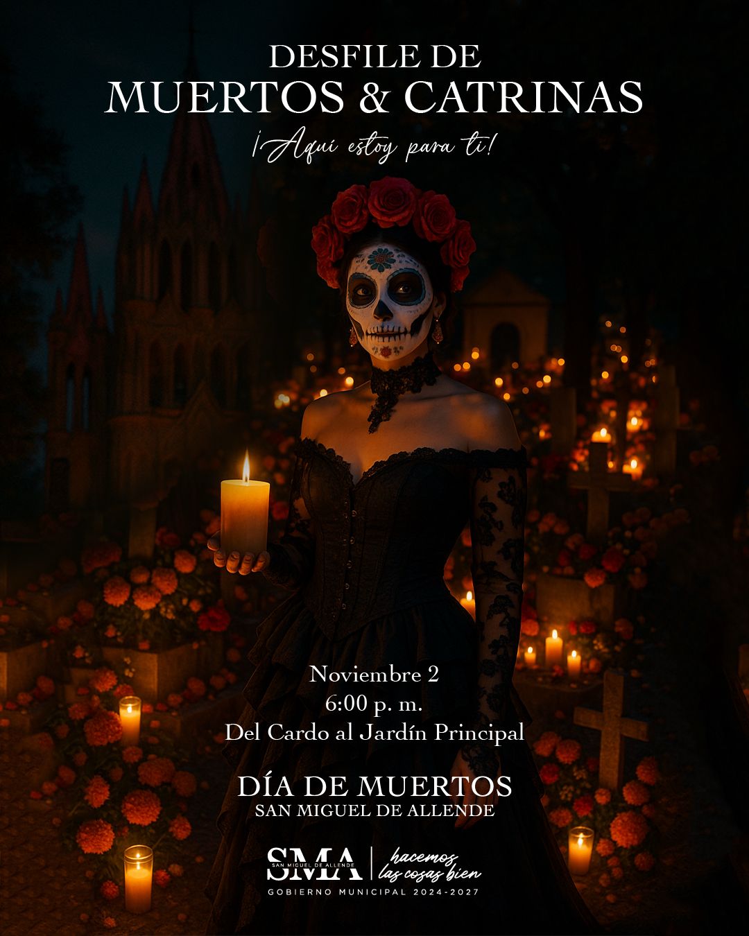 31 de octubre de 20255 de noviembre de 2025 Equipo Redacción El espíritu del Día de Muertos recorre San Miguel de Allende ¡El espíritu del Día de Muertos recorre San Miguel de Allende! Ven al Desfile de Muertos & Catrinas este 2 de noviembre a las 6:00 p. m. El punto de partida será El Cardo, rumbo al Jardín Principal. Consulta el recorrido y únete a esta gran celebración #SanMiguelDeAllende #DíaDeMuertos #HacemosLasCosasBien 31 de Octubre 2025 San Miguel de Allende, Gto. Comparte esto en... Compartir en X (Se abre en una ventana nueva) X Comparte en Facebook (Se abre en una ventana nueva) Facebook Me gusta Cargando... Relacionado