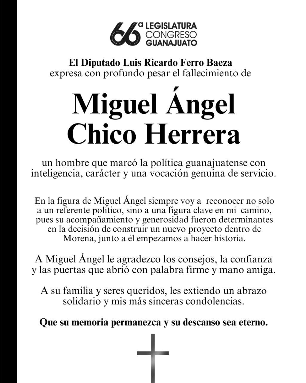 7 de diciembre de 202513 de diciembre de 2025 Equipo Redacción OBITUARIO EN MEMORIA DE MIGUEL ÁNGEL CHICO HERRERA, CON PROFUNDO PESAR DIPUTADO LUIS RICARDO FERRO BAEZA OBITUARIO EN MEMORIA DE MIGUEL ÁNGEL CHICO HERRERA, CON PROFUNDO PESAR DIPUTADO LUIS RICARDO FERRO BAEZA Comparte esto en... Haz clic para compartir en X (Se abre en una ventana nueva) X Haz clic para compartir en Facebook (Se abre en una ventana nueva) Facebook Me gusta Cargando... Relacionado