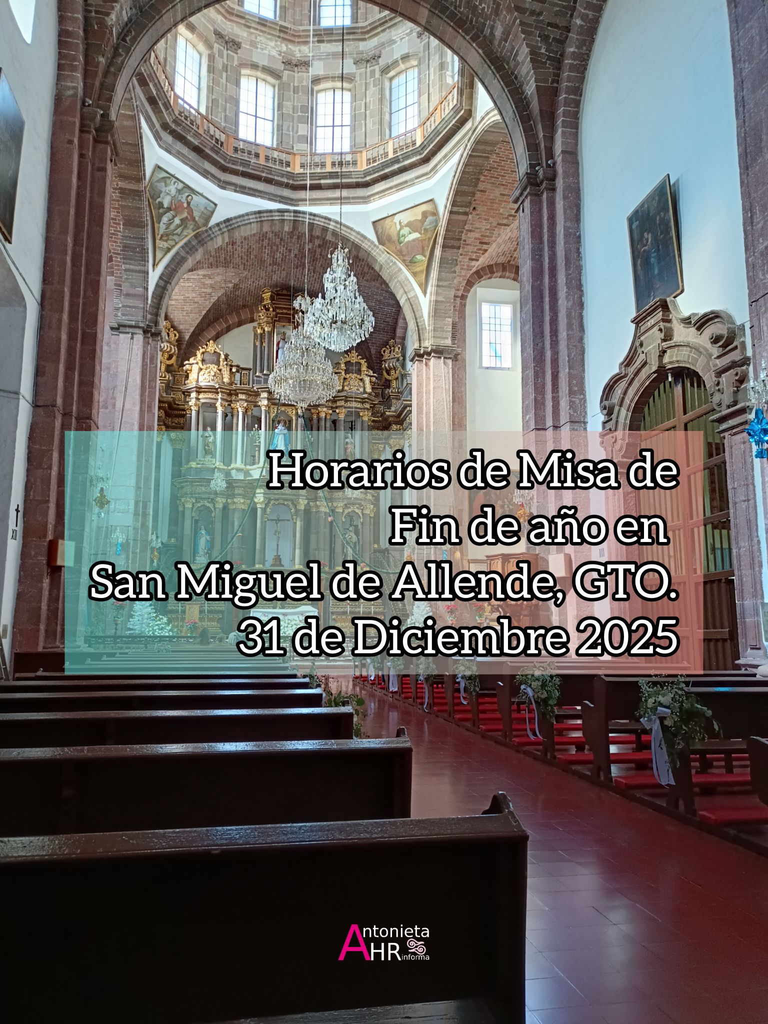 #Misas #SanMigueldeAllende 𝙃𝙤𝙧𝙖𝙧𝙞𝙤𝙨 𝙙𝙚 𝙢𝙞𝙨𝙖𝙨 𝙙𝙚 𝙛𝙞𝙣 𝙙𝙚 𝙖𝙣̃𝙤 𝙚𝙣 𝙏𝙚𝙢𝙥𝙡𝙤𝙨 𝙙𝙚 𝙎𝙖𝙣 𝙈𝙞𝙜𝙪𝙚𝙡 𝙙𝙚 𝘼𝙡𝙡𝙚𝙣𝙙𝙚, 𝙚𝙡 𝙢𝙞𝙚́𝙧𝙘𝙤𝙡𝙚𝙨 31 𝙙𝙚 𝘿𝙞𝙘𝙞𝙚𝙢𝙗𝙧𝙚 2025.