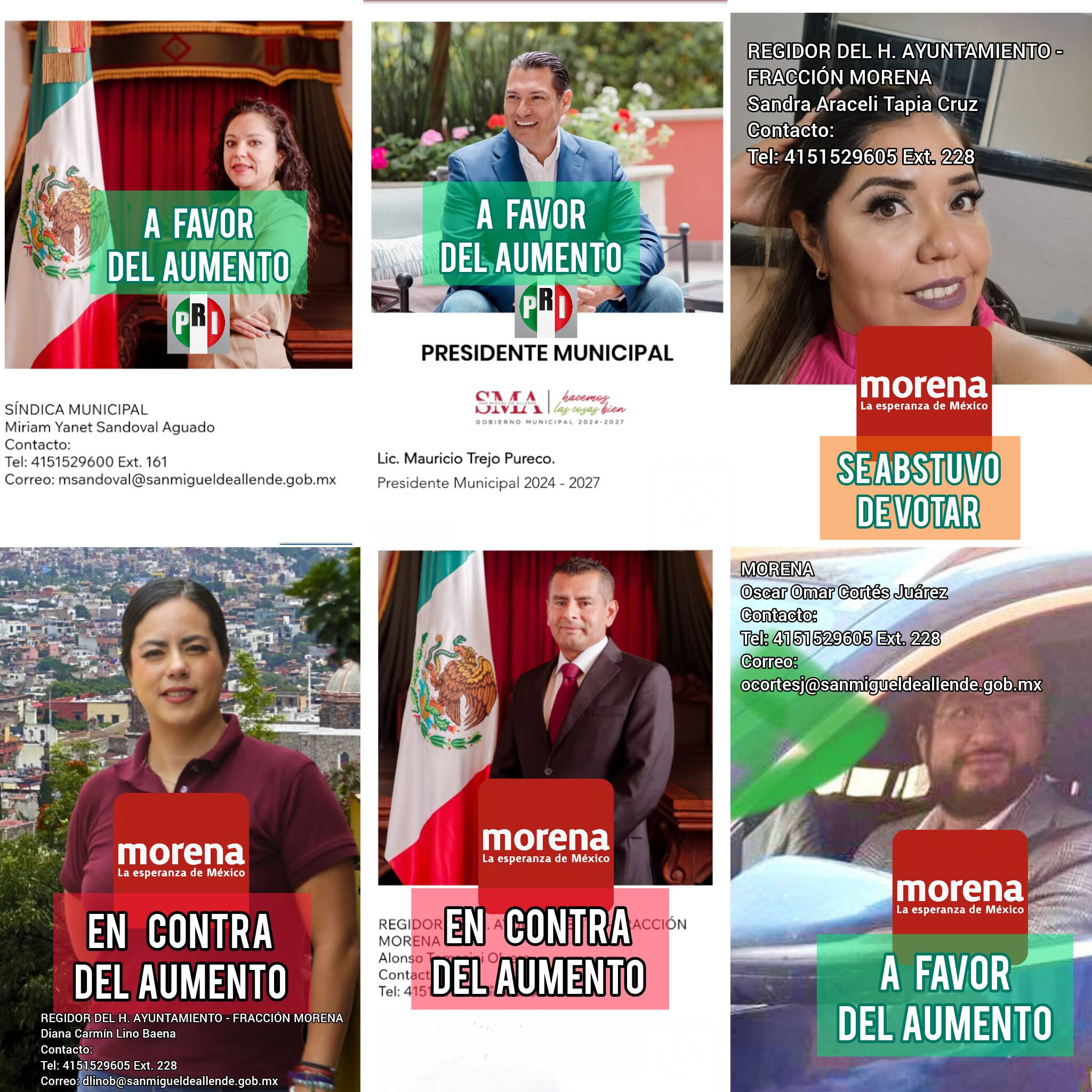 Mientras que la Regidora de MORENA, Sandra Araceli Tapia Cruz se abstuvo de votar aclarando que tenía familiares concecionarios y que no podía ejercer el voto (muy honesta la regidora)., y la regidora de MORENA Diana Carmín Lino Baena; y el regidor de MORENA Alonso Tomasini Olvera, votaron en contra del aumento.