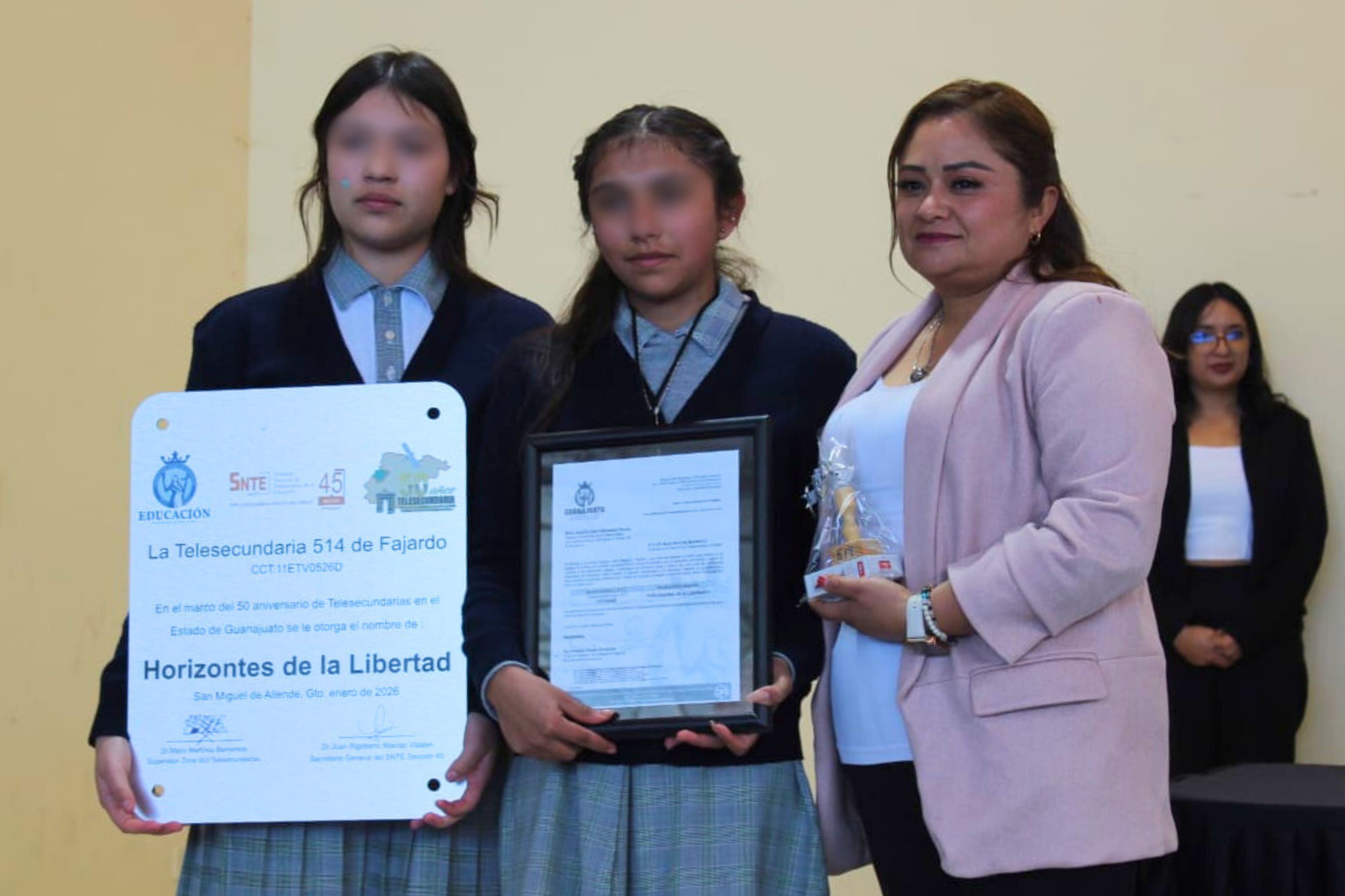 SAN MIGUEL DE ALLENDE, GTO., LUNES 26 DE ENERO 2026.- El acto de asignación de nombres a la telesecundaria fue a la zona 513 en el marco del 50 aniversario de la fundación del servicio de telesecundarias en el estado de Guanajuato. Cada telesecundaria eligió el nombre para el legado que quiere dejar y consolidar la memoria histórica para presentar los valores de los nombres elegidos.