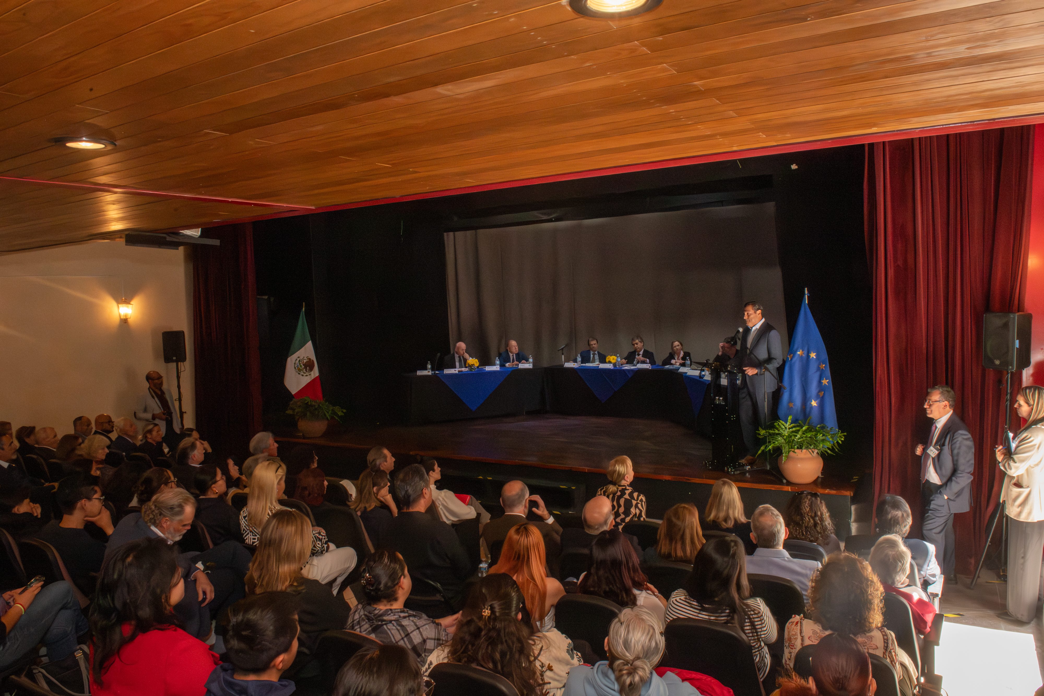 Ante diplomáticos europeos, autoridades estatales, sector empresarial y comunidad estudiantil, el Alcalde participó en el conversatorio “Retos Globales y Cooperación Internacional México–Unión Europea”, donde planteó que el contexto internacional exige liderazgo y capacidad de diálogo desde lo local: «Hoy la diplomacia parece juego de niños. Parece que la diplomacia y la política han perdido seriedad, han perdido esencia y han perdido significado. Hoy parece que es la ley del más fuerte contra el más débil y hoy parece que somos incapaces de dialogar con quien tenemos diferencias».