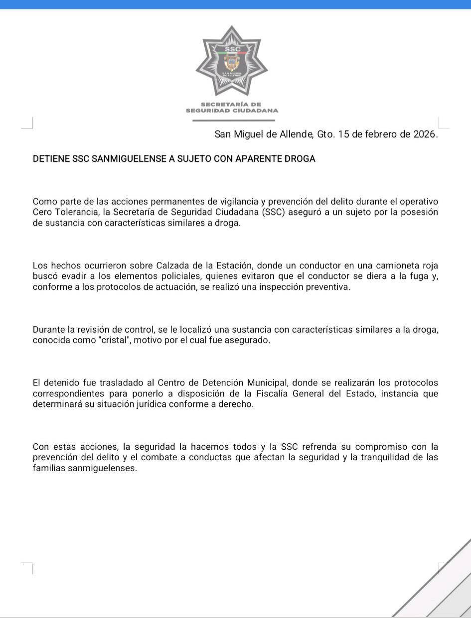 Con estas acciones, la seguridad la hacemos todos y la SSC refrenda su compromiso con la prevención del delito y el combate a conductas que afectan la seguridad y la tranquilidad de las familias sanmiguelenses.