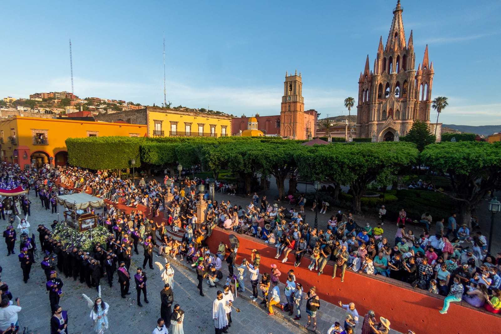 ⏰ 6AM, Viacrucis de la Parroquia San Miguel Arcángel alrededor del jardín principal, Recorrido: Atrio de la Parroquia de San Miguel Arcángel, Correo, Corregidora, San Francisco, Plaza Norte, Portal Allende, Parroquia San Miguel Arcángel.