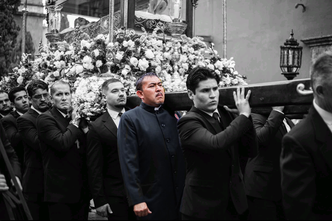 SAN MIGUEL DE ALLENDE, GTO., SÁBADO 04 DE ABRIL 2026.- La 313a procesión del Santo Entierro se realizó el Viernes 03 de Abril con los protocolos ya esperados, pero hubo un detalle que llamó la atención con uno de los sacerdotes con más experiencia y querido por la comunidad del Templo del Oratorio, quien no salió con su capa pluvial sacerdotal de gala bajo el palio de los sacerdotes de esta magna procesión, sino de negro con su cuello clerical cargando farolas y la urna.