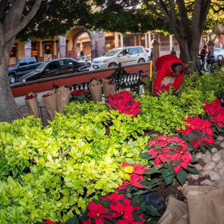 COLOCAN NOCHEBUENAS EN JARDÍNES Y PLAZAS DE SAN MIGUEL DE ALLENDE, PIDEN CUIDARLAS
