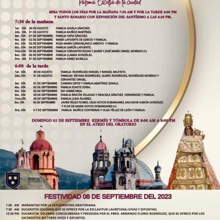 29 de agosto de 20238 de septiembre de 2023 Equipo Redacción COMIENZA EL 30 DE AGOSTO NOVENARIO A LA VIRGEN SE LORETO