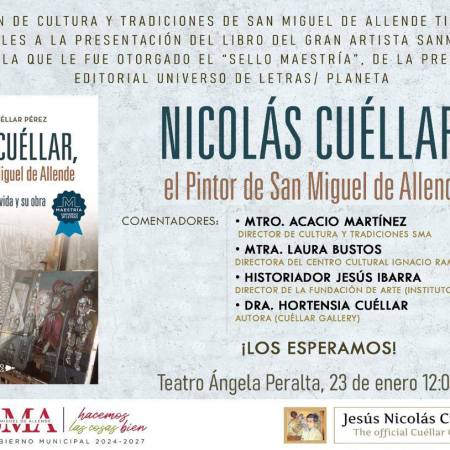 14 de enero de 202622 de enero de 2026 Equipo Redacción Invitación a la Presentación del libro «Nicolás Cuéllar, el pintor de San Miguel de Allende»