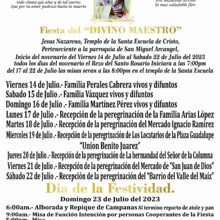 FIESTA DEL DIVINO MAESTRO 2023 EN TEMPLO DE LA SANTA ESCUELA