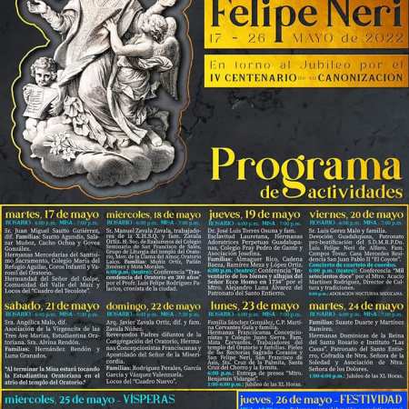 19 de mayo de 202220 de mayo de 2022 Equipo Redacción FESTEJOS POR 400 AÑOS DE LA CANONIZACIÓN DE SAN FELIPE NERI, LOS ORATORIANOS ESTÁN DE FIESTA