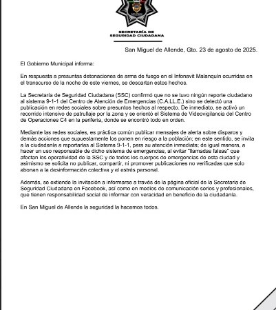 23 de agosto de 202528 de agosto de 2025 Equipo Redacción SE DESCARTAN PRESUNTAS DETONACIONES DE ARMA DE FUEGO EN EL INFONAVIT MALANQUÍN