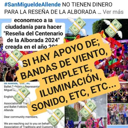 SE LES DARÁ APOYO A LA RESEÑA DE LA ALBORADA 2024 DE; DOS BANDAS, TEMPLETE (TAPANCO), POLVORA, SONIDO, ILUMINACIÓN
